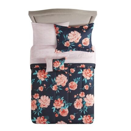 Peach Floral 6 Piece Bed In A Bag Comforter Set